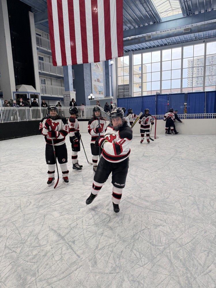 The highlight of the night occurred during the 1st intermission when a group of Dare Devils players and coaches had the opportunity to participate in the "Marquee Matchup" game on the ice under the bright lights of the Prudential Center. The Dare Devils were split into two evenly matched teams to participate in this prime time event. Reese Citro, James Cooney, Taylor Esposito (goalie), Shea Passikoff, Owen Silverstein and Liam Smith wore their white uniforms while Ayden Duran, Theodore Howard, Patrick Law and Will Trampota donned their red jerseys. Coach Bernard drew the short straw and played goalie for the red squad while Coaches Brendon and Eric supervised the action from center ice.